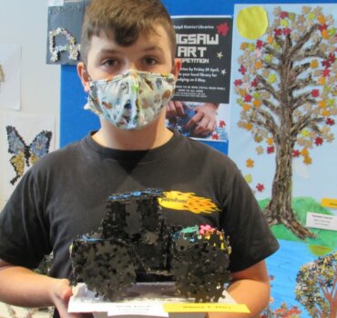 ‘Jigsaw Art’ ran across both Cambridge and Te Awamutu libraries, combining their usual April holidays art theme with one using jigsaw pieces from incomplete puzzles. It called on contestants in both towns to recycle random jigsaw bits into something creative and original.
