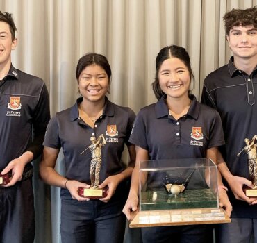 The St Peter’s 2nd team, Heart Iadpluem, Ben Ambler, Baxter Smith and Nick Greaney, finished third, anchored by a 3 over par 75 from Heart. The 3rd team of Jack Saunders, Morgan Baker, Max White and Lucas Peng were also not far off the podium, due in no small part to a fantastic 4 over par 76 from Lucas.