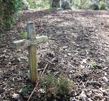 Her partner John Elliott shared her views as did daughter Tracey so after the funeral service on July 11, 2017, she was laid to rest at the edge of the section with a modest wooden cross and a native bush planted at the spot.