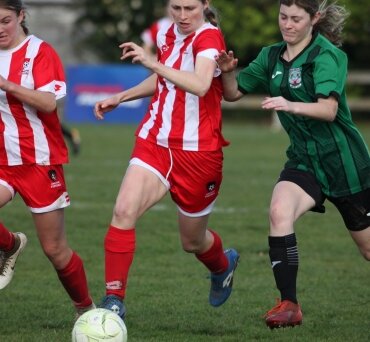 Cambridge centreback Maria Cameron intercepts a through ball during Cambridge’s 3-0 home win over Ngāruawahia in a Waikato women’s first division match last weekend. Cambridge, fourth equal on the points tables, travels to Melville on Sunday.