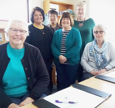 Cambridge Citizens Advice Bureau chair Caroline Kitching (back right) with some of her team, Rose Smith, Erena Bruce, Jasmine Shen, manager Maree Payne and Gwen Dobson.