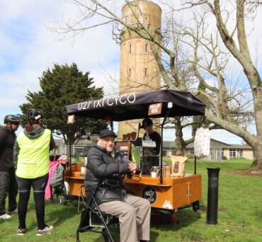 Water Tower today in front of Cambridge Resthaven with the popular Cycle Coffee Company mobile cart.