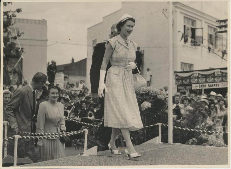 - Queen Elizabeth II in Te Awamutu, 1954. Queen Elizabeth is walking onto the stage and directly behind her, partially hidden, is Mayor Clifton Frank Jacobs. At the bottom of the stairs Prince Philip is talking to Mayoress Veda Jacobs. © Te Awamutu Museum.