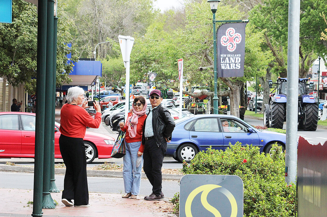 Several sign-written utes, tractors, and a cherry picker drove laps around Te Awamutu in support of the farmers.
