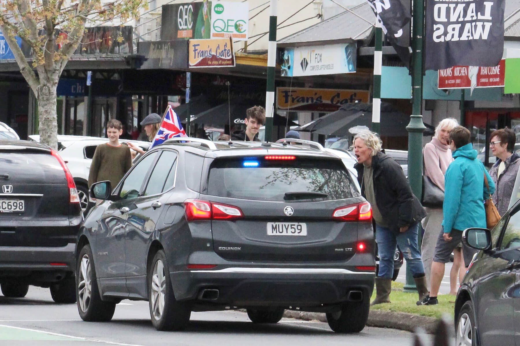 There were anti Three Waters signs, anti-mandate signs, a Counter Spin Media vehicle, and a van in police colouring with images of New Zealand politicians, including Jacinda Ardern, behind bars.