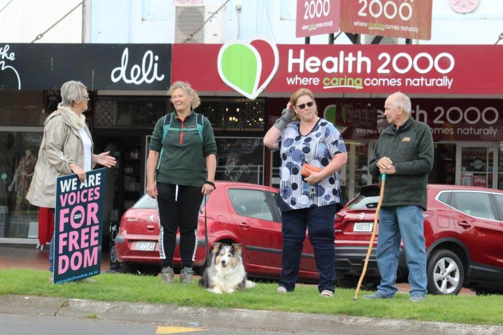 There were similar scenes in Te Awamutu where conspiracy theorists and Voices for Freedom members far outnumbered any rural participants.