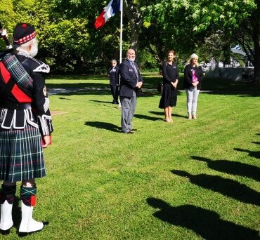 The French and New Zealand flags flew at half mast next to the Fred Graham sculpture in Lake Te Koo Utu Domain last week to mark 104 years since New Zealand soldiers liberated the northern French town of Le Quesnoy.
