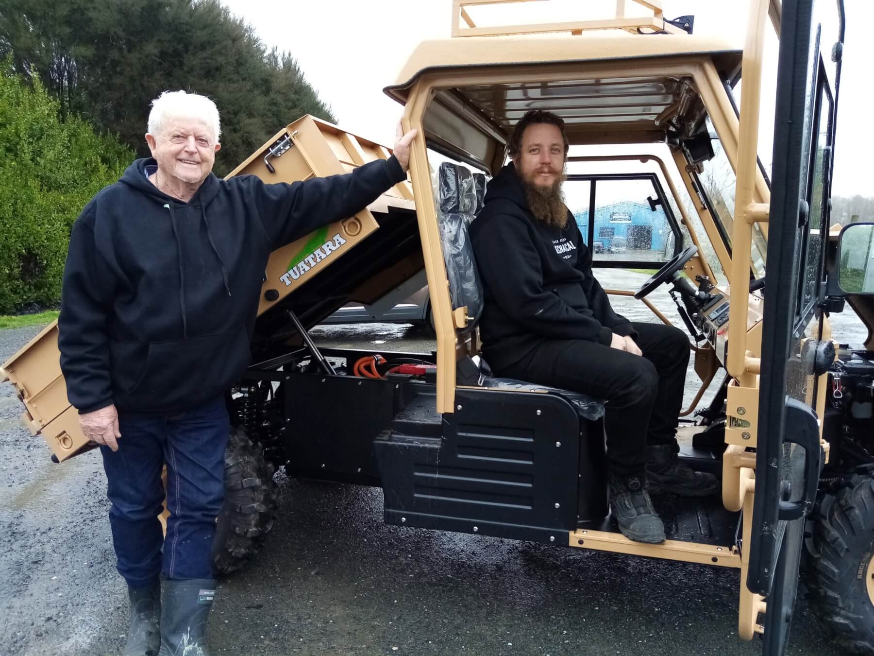 Allan Barclay, left, pictured with one of the service crew Seaton Black, in one of the Tuatara ATVs.