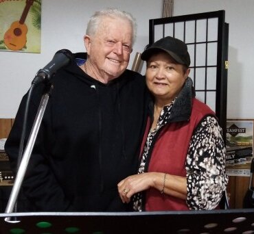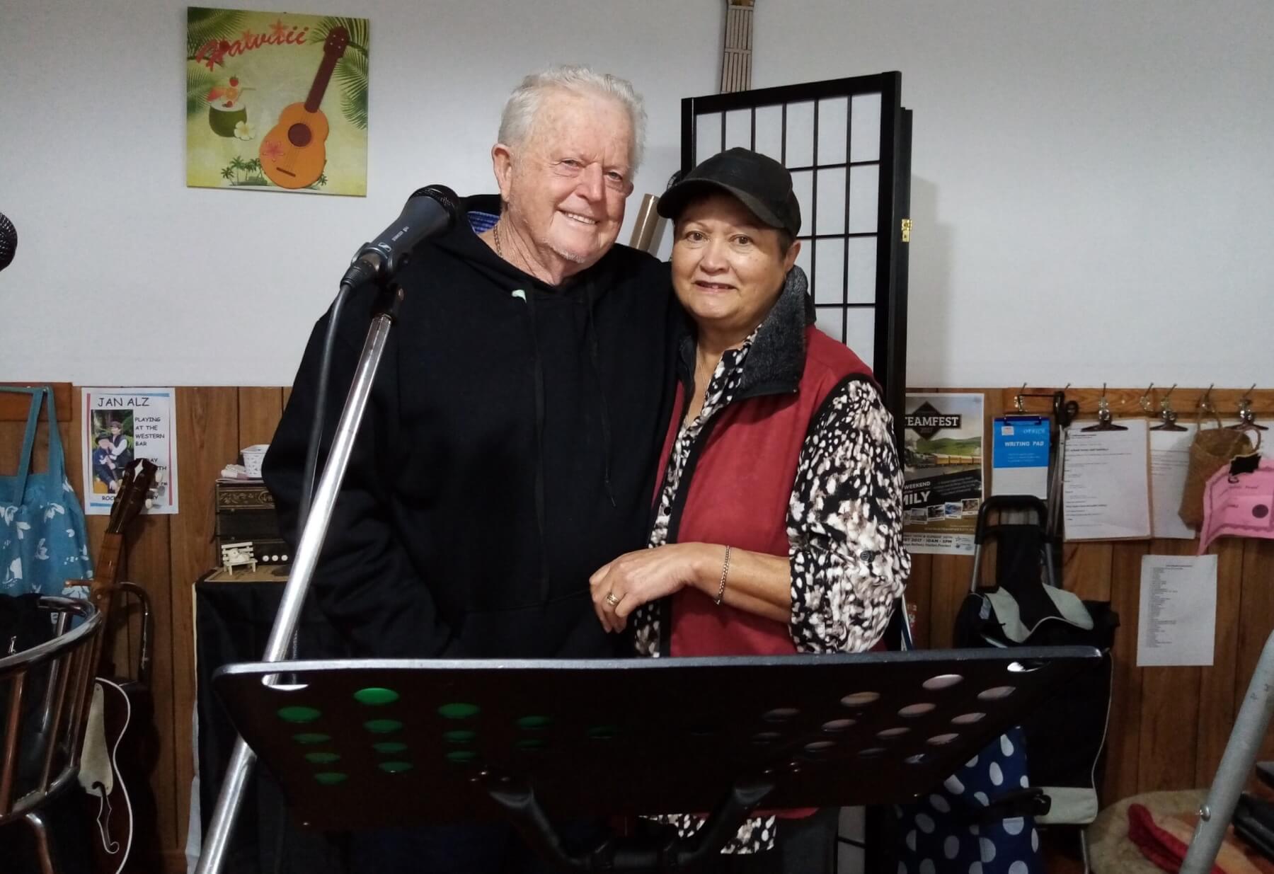 Ōtorohanga musicians Allan and Jan Barclay – aka The Jan Alz Band – performing at an event in Te Awamutu.