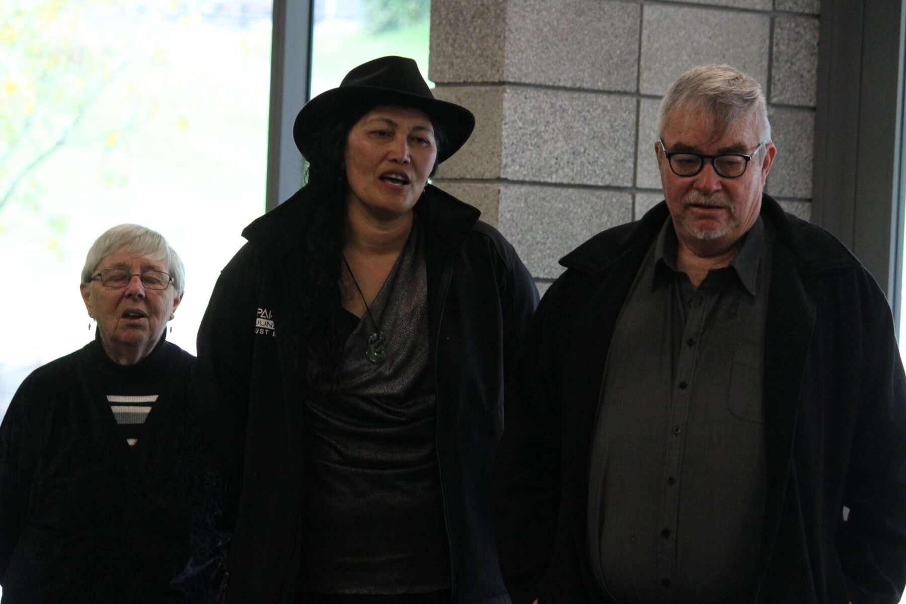 - Reverend Stephanie Owen of St John’s Anglican Church in Te Awamutu, Tia Ormsby and Bill Harris at the whakatau.