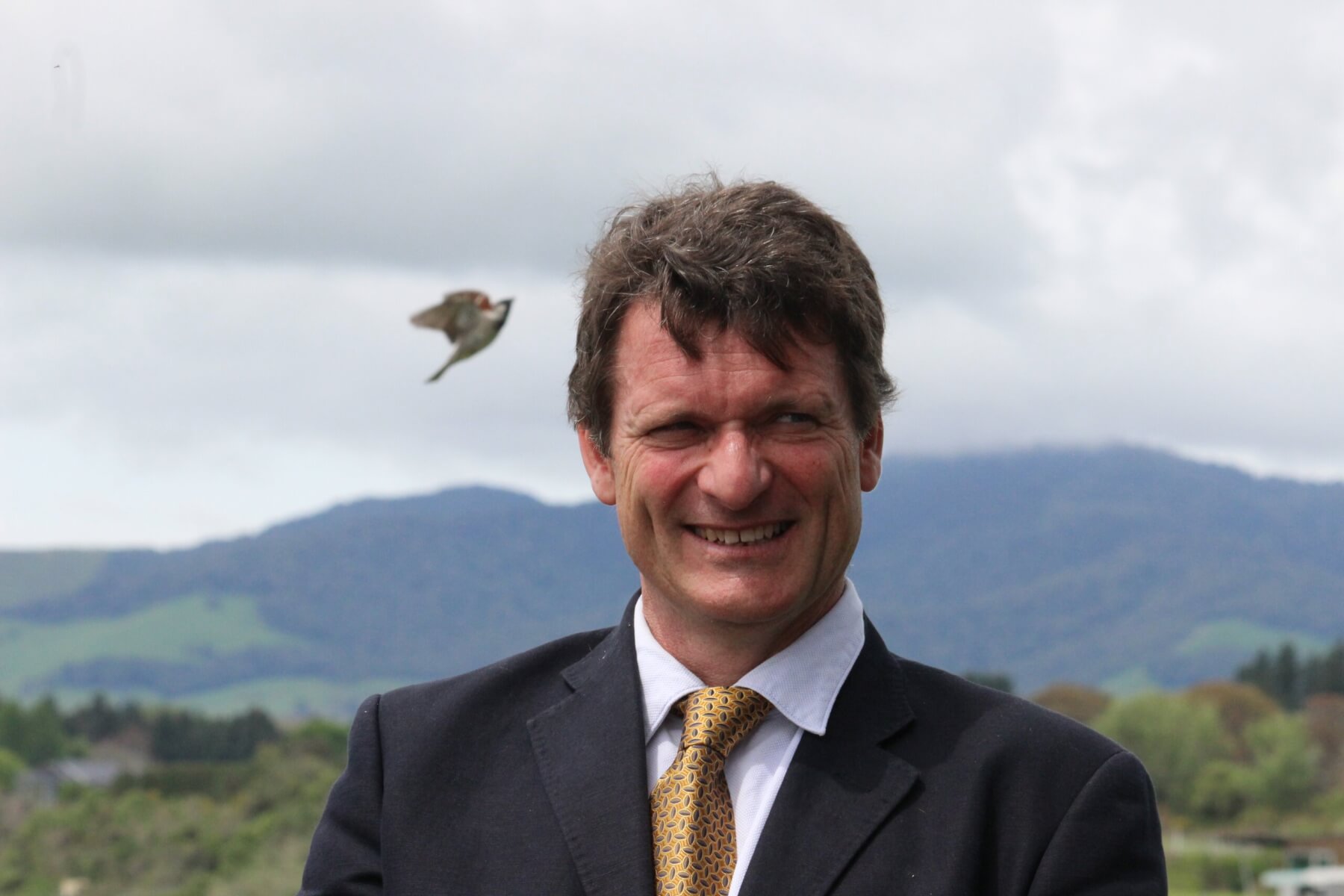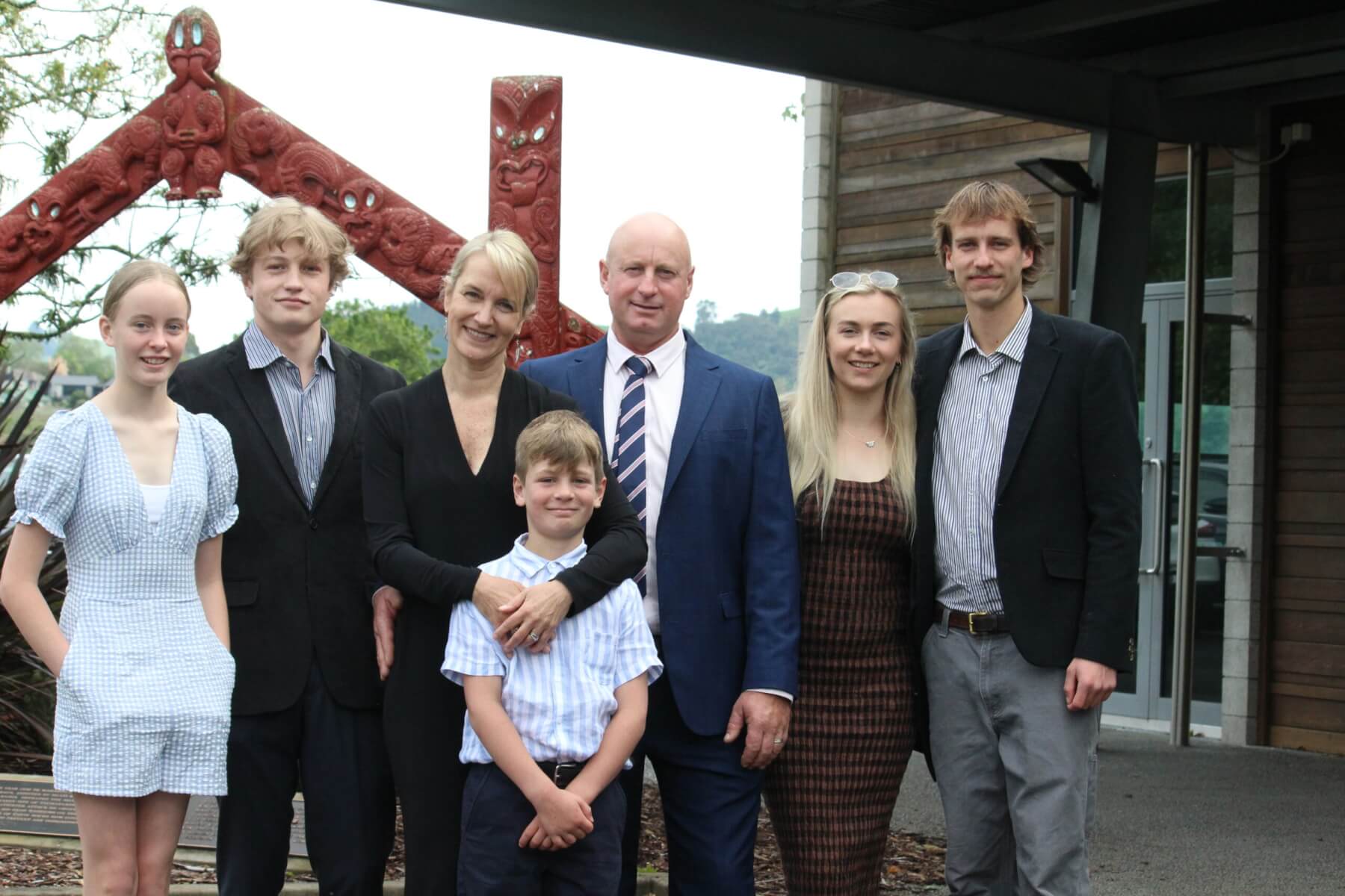 - New councillor Mike Montgomerie was right at home in front of his maunga Maungatautari.