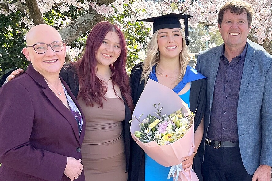 Family celebration: Pamela and Ian Storey with daughters Kayla and Brenna at Kayla’s recent graduation from Lincoln University. Photo: Supplied.