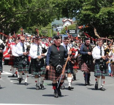 Right behind her was Cambridge & Districts Pipe Band, fresh from their earlier appearance at the Te Awamutu Christmas Parade.