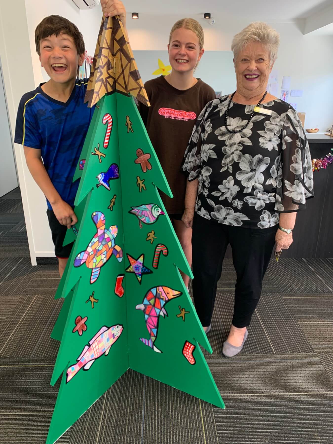 The project is the Cambridge Community Board’s Christmas Tree project. Board member Alana MacKay was on hand to receive the school’s two wooden trees last week and said she was thrilled to see how well schools and community groups had responded to the challenge.