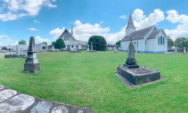 The wording on a headstone in the grounds of the Old St John’s Church in Te Awamutu is fading but the words Constable G.B. Gilfillan can still be seen.