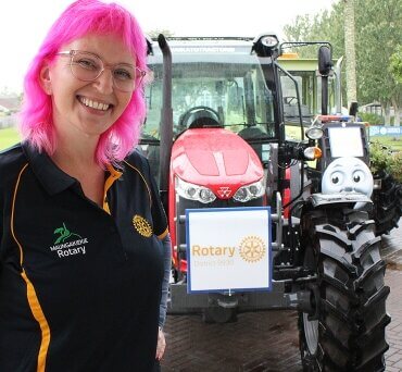 Cat Levine with one of the tractors touring Waipā the next fortnight to raise awareness of children’s mental health issues. Photo: Mary Anne Gill