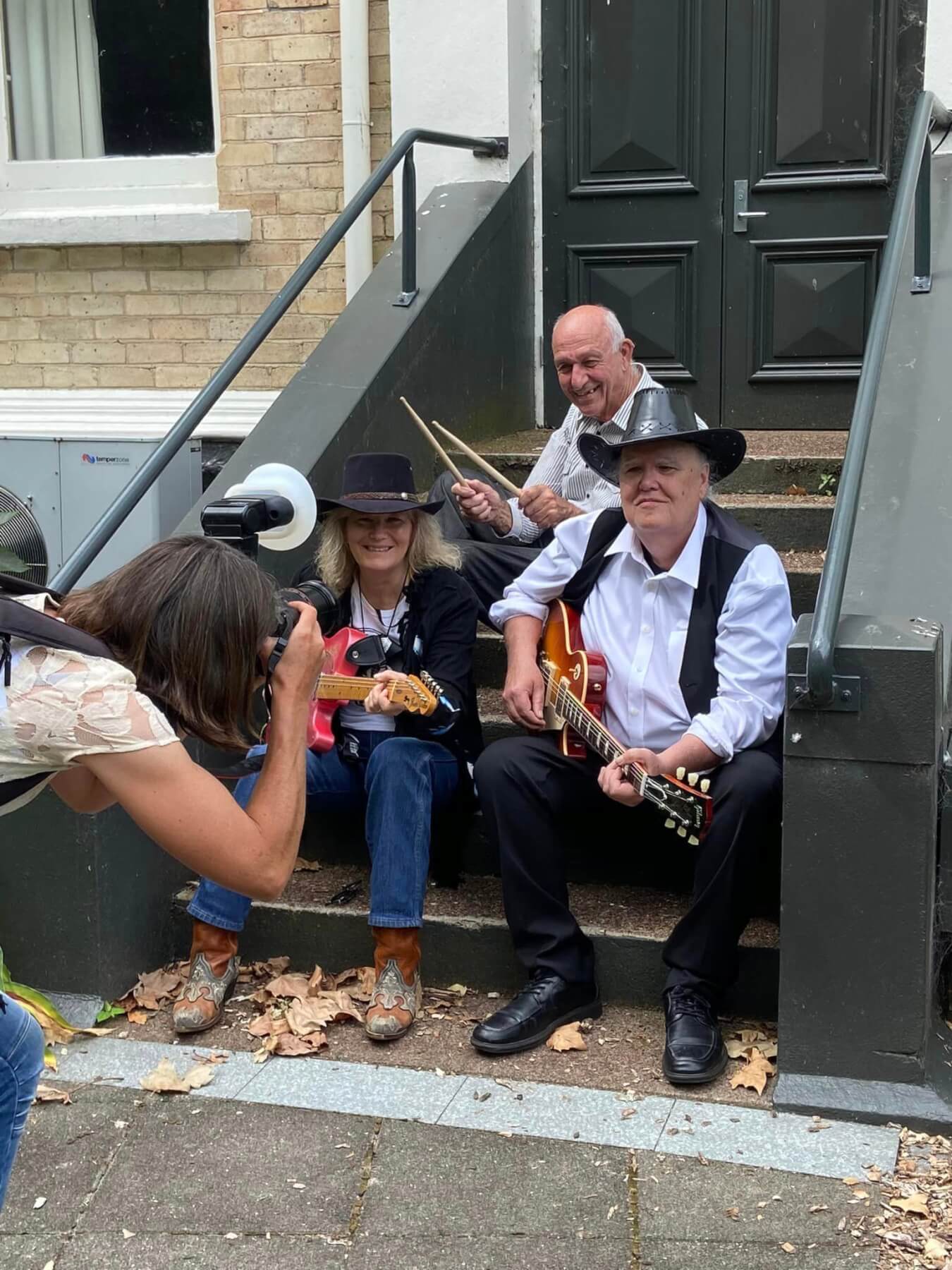 - Tina Turley and Big Johnny Blue direct from Canada with drummer, Kiwi Dean McGaveston, ahead of their appearance in the Cambridge Autumn Festival. Photo: Steph Bell-Jenkins.