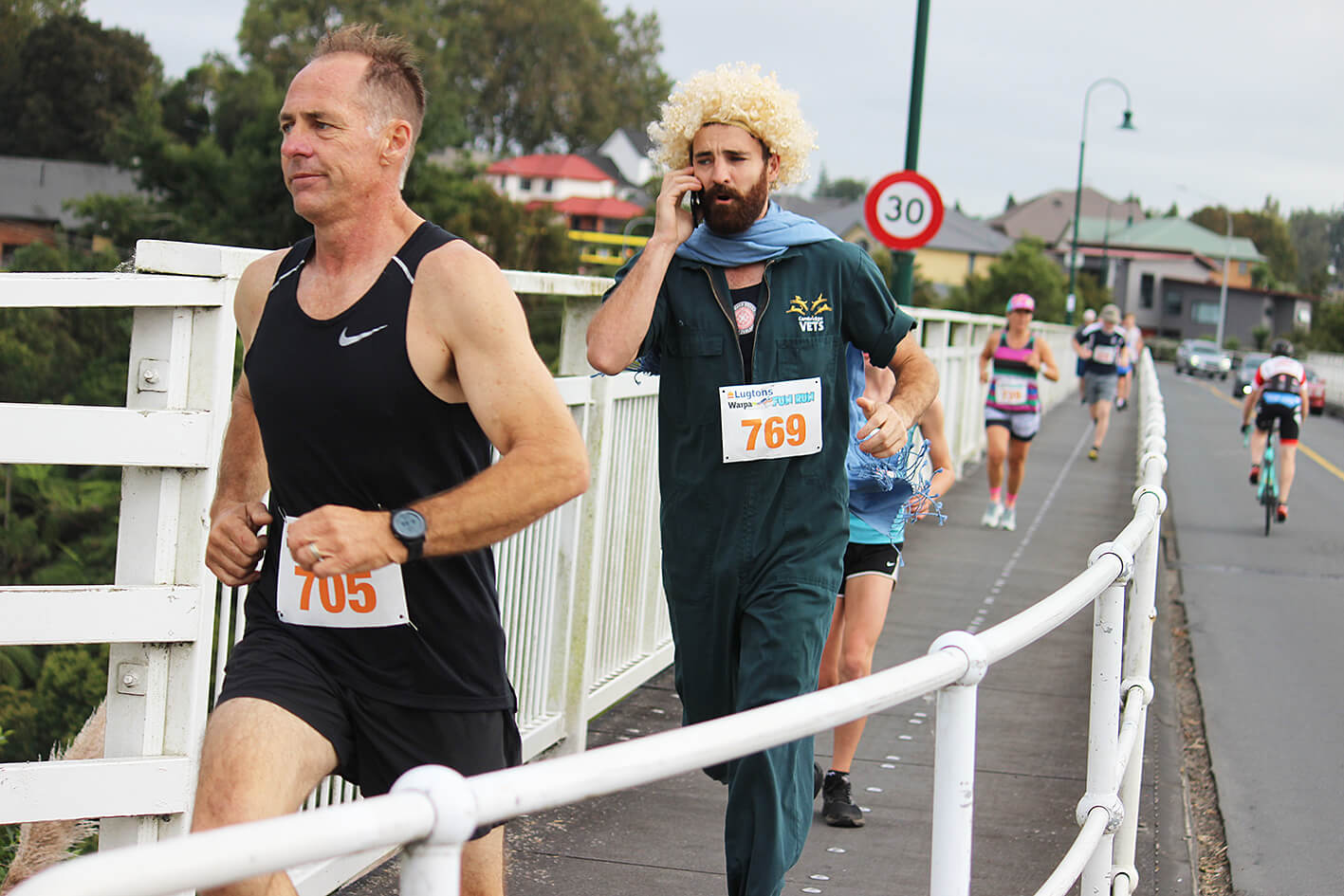 - Patrick Taylor (769) from Cambridge Vets takes an emergency call during the 5km run while his workmate Bill Hancock (705) strides ahead.