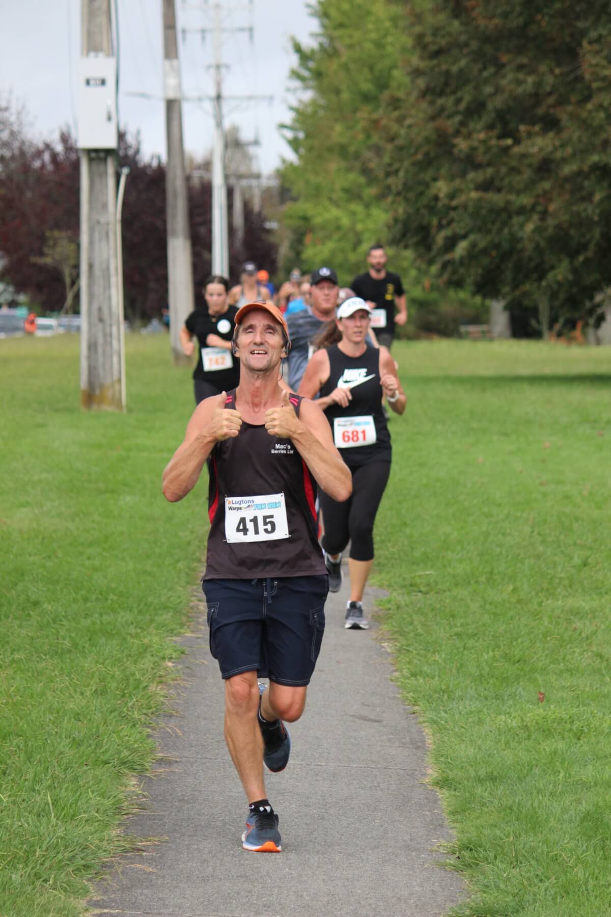 - Thumbs up from Ryan McGowan (415) of Ōhaupō on his way to 15th in the 10km run.