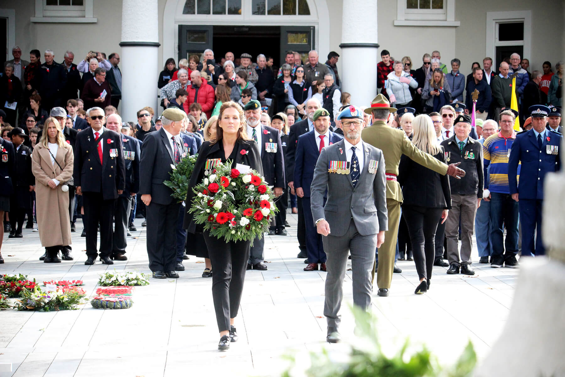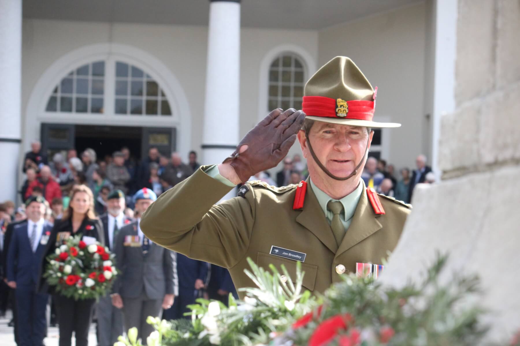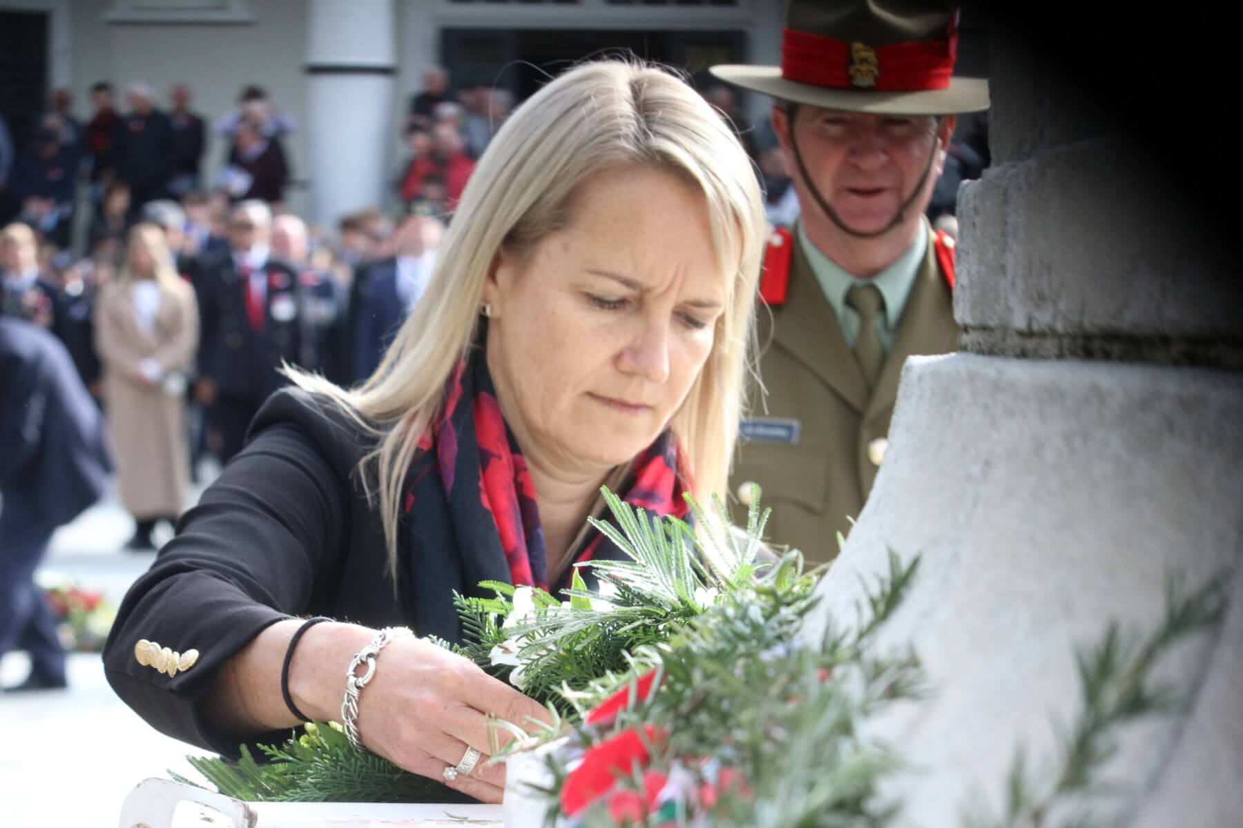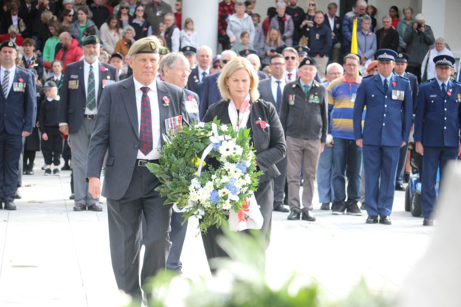 - Brigadier Jon Broadley and mayor Susan O’Regan laying a wreath.
