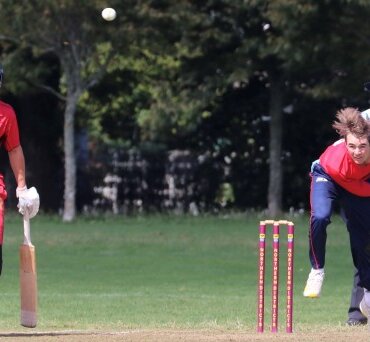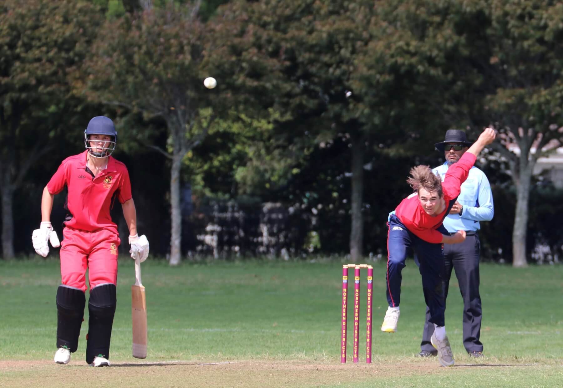 - Flynn Morey sends down another of his hostile deliveries on his way to 5-52 for St Peter’s in the final.