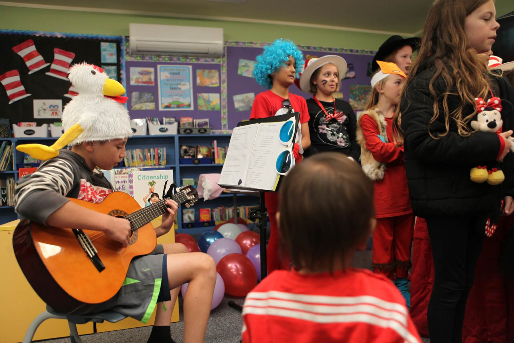 The first song, Happy Birthday, was accompanied by Leo, who overcame nerves to give his first public performance on the guitar.