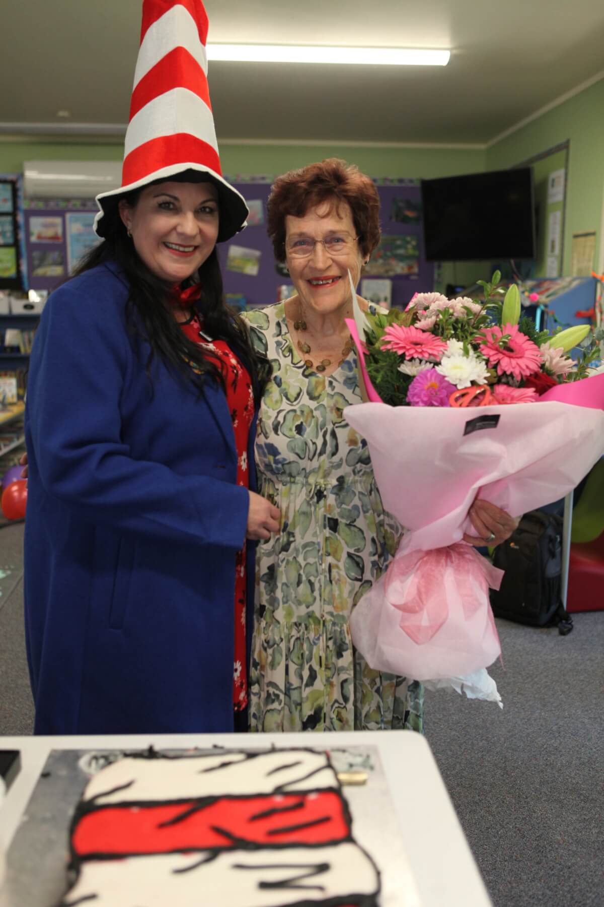 Students dressed up as book characters and sang three songs before staff presented June with a cake, a handmade birthday card and a big bunch of flowers.