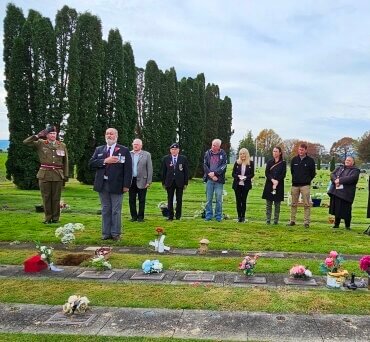 Retired chaplain Ants Hawes led the service and bugler Doug Rose played the Last Post. Broadley read details of O’Brien’s service and Hill gave him an emotional send-off noting he knew two of the men buried either side of him and they were top chaps.