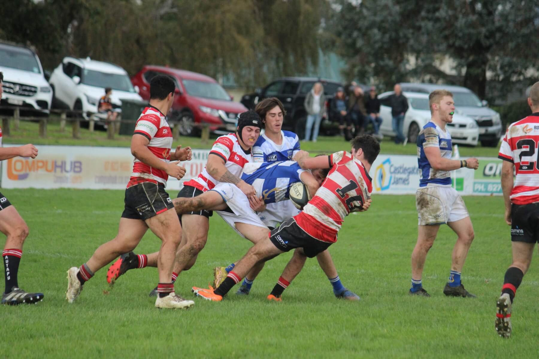 - Got you. Hautapu’s Reid Shackleton, right, wraps up Leamington’s Ben O’Neill in a tackle. Photo: Mary Anne Gill.