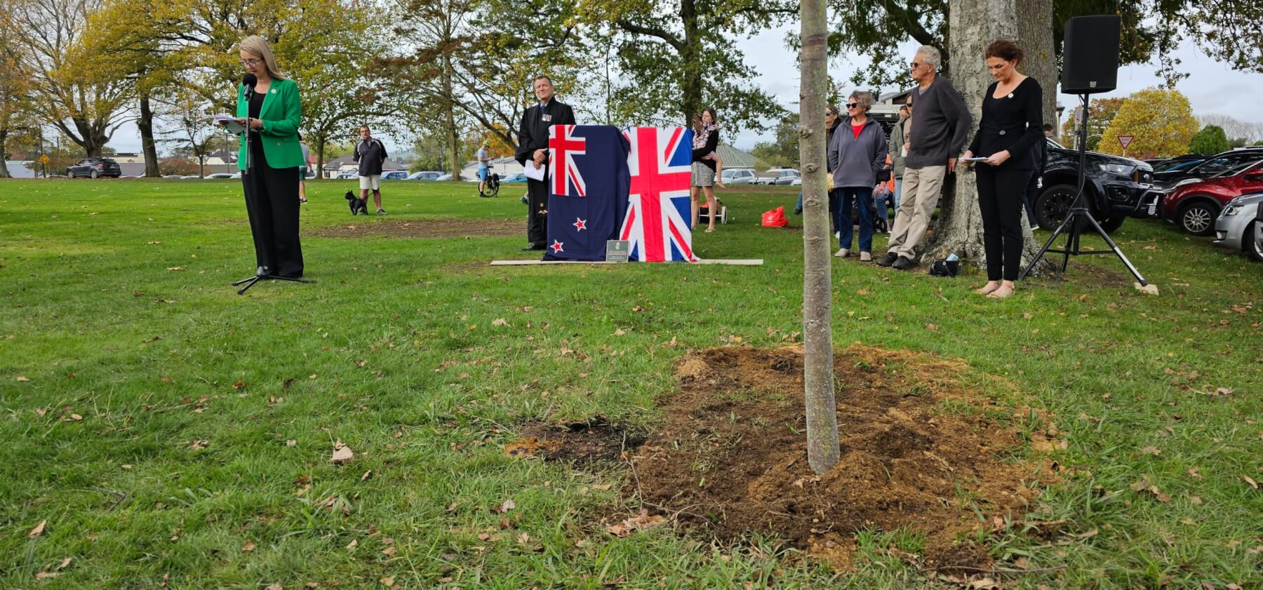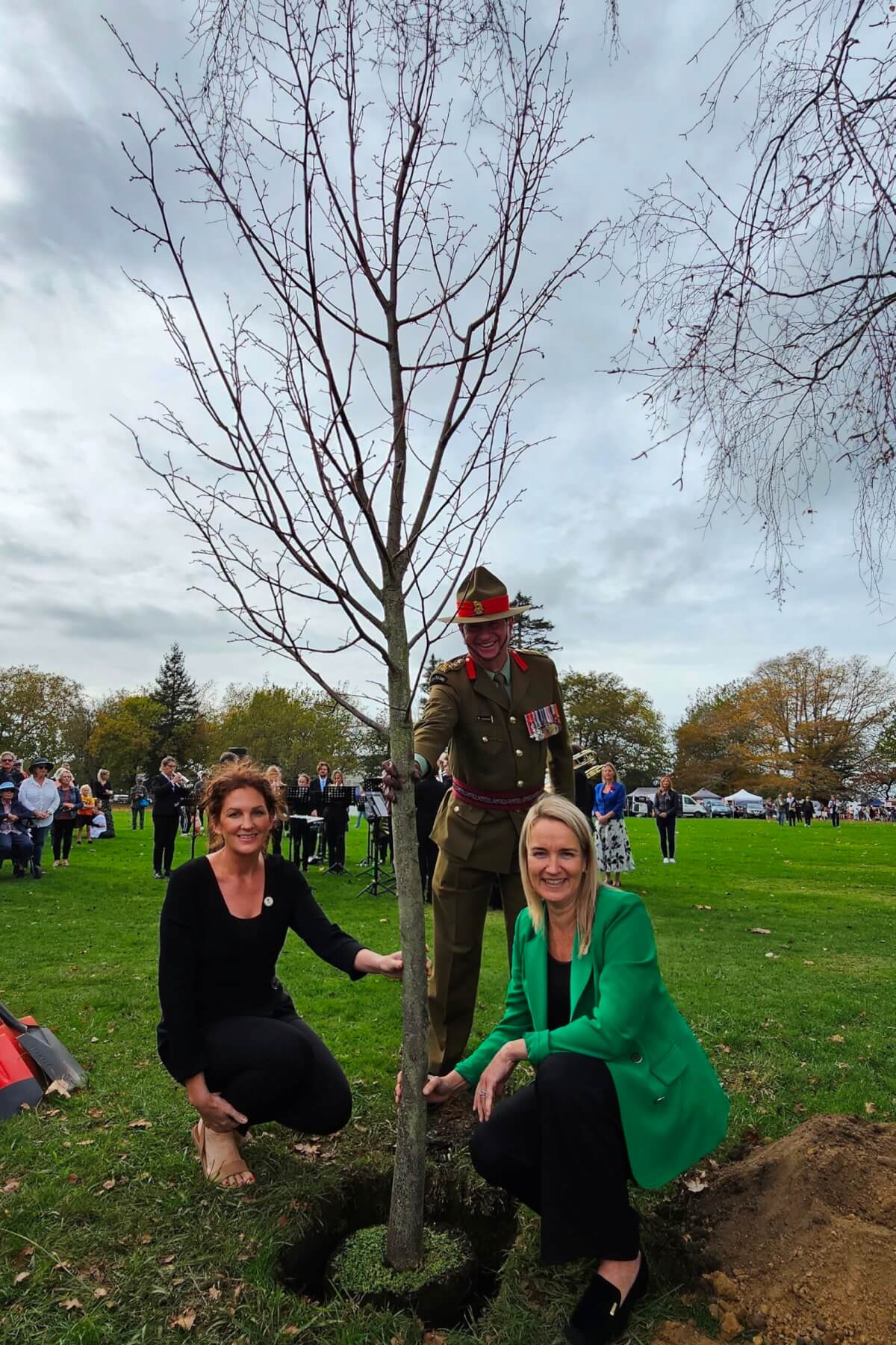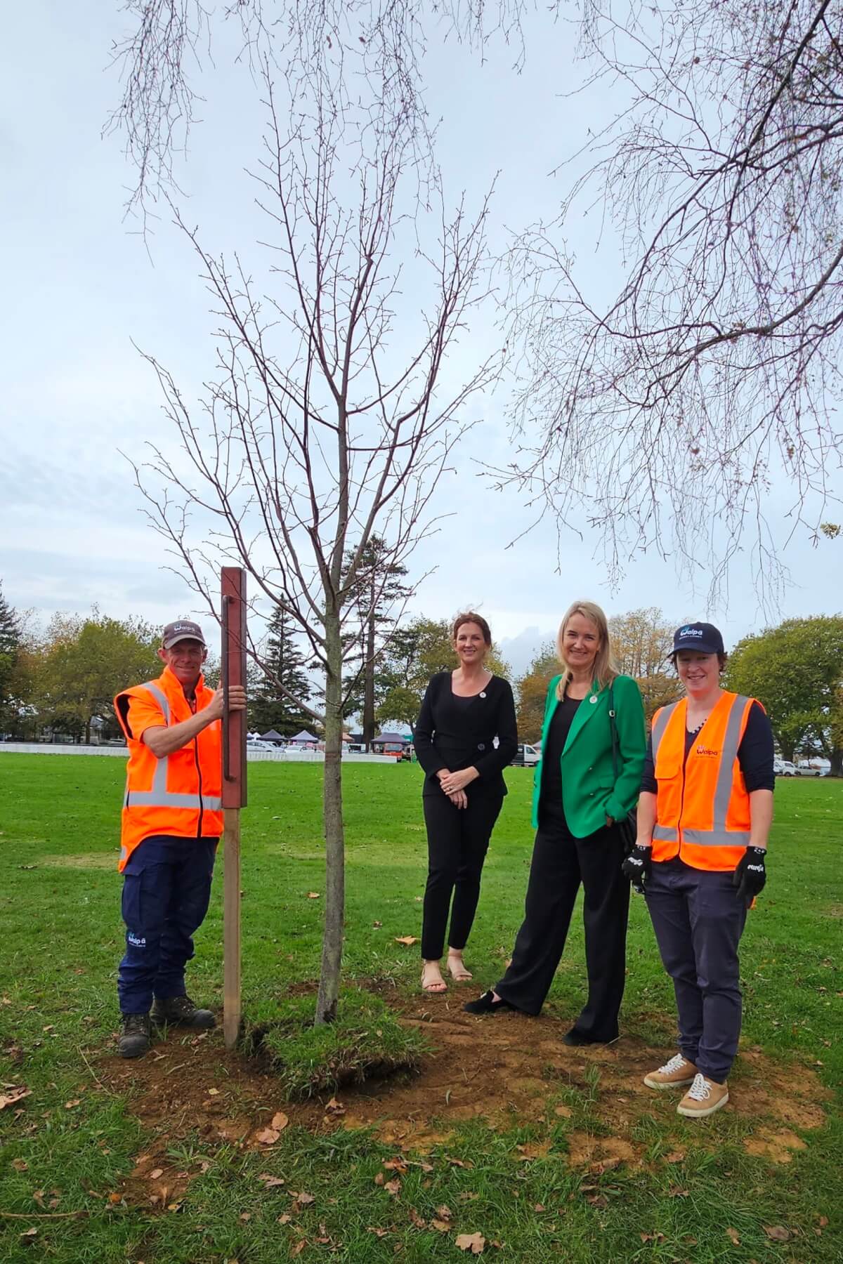 Mayor Susan O’Regan was tasked with helping plant two European lime trees in te Awamutu and Cambridge on a morning where rain had threatened but stayed away.