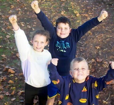 Asher, front, Ava, left, and William, McCorkindale celebrate getting to keep their surprise windfall on Monday.