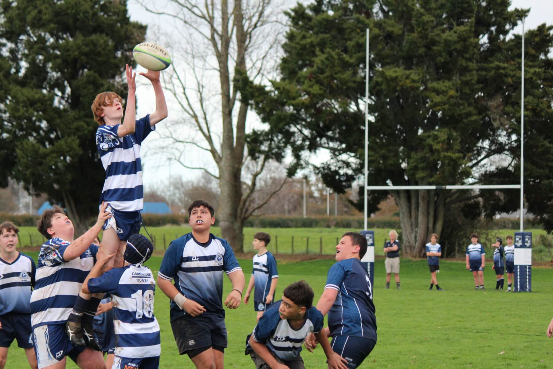 - Xavier Nisbet wins lineout possession during an Under-14 rugby derby on Saturday. Boasting rights went the way of his Cambridge High team which dominated the second half against Te Awamutu College to run out 41-24 winners. The college side fought back with a late first half try to turn 19-17 down, and led soon after thanks to an early second half try. But Cambridge piled on 22 points in response.
