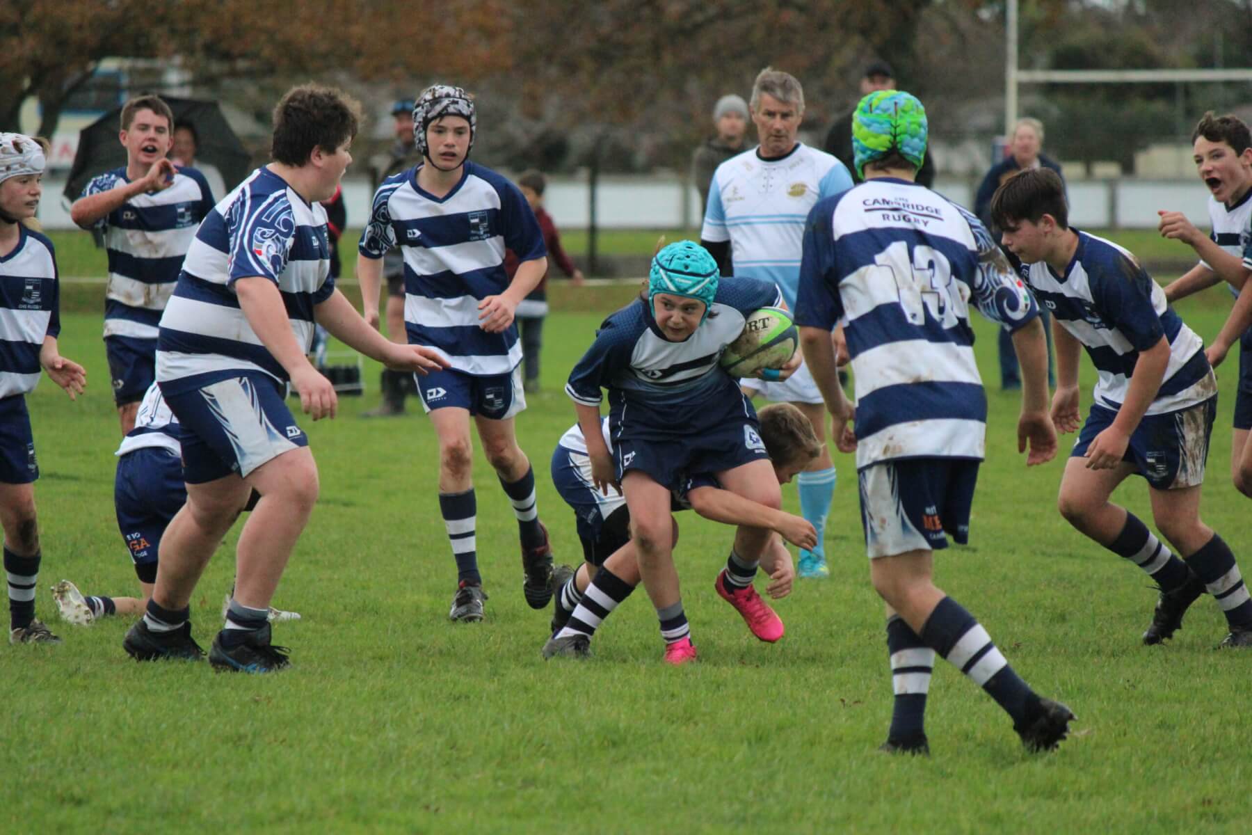 - All hands on deck – Dallas Paul-Sykes, centre, attempts to be first to a loose ball at Cambridge on Saturday. Under-14 rugby boasting rights went the way of Cambridge High in this Waipā derby match. Cambridge dominated the second half to run out 41-24 winners in an entertaining clash. The college side fought back with a late first half try to turn 19-17 down, and led soon after thanks to an early second half try. But Cambridge piled on 22 points in response.