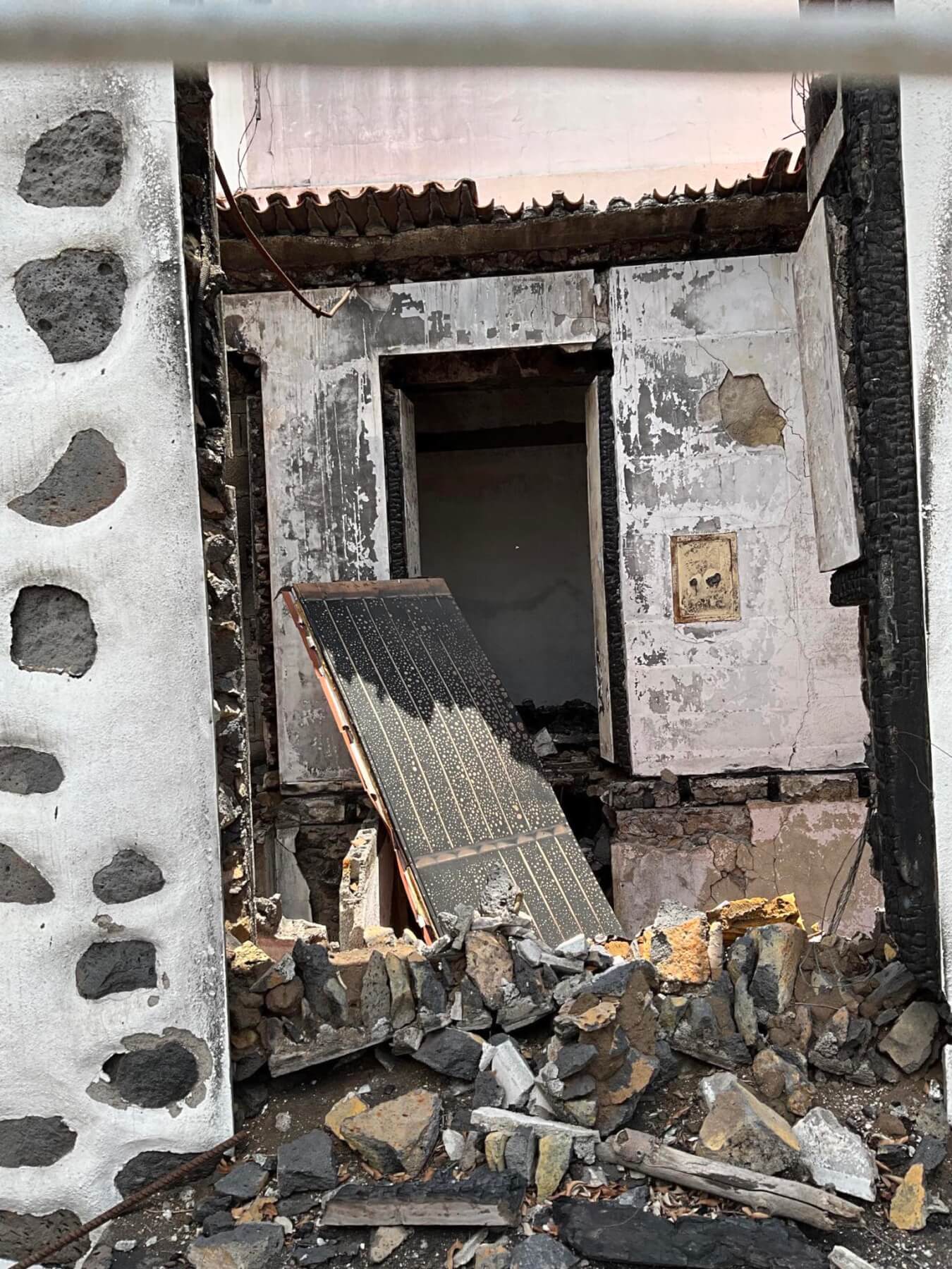 Walking across sharp, rubbly lava flows, stepping over debris from houses. Seeing an entire three-storey house reduced to about one metre thick below solid rock. Coming across a little yellow toy dump truck with rocks in the back, located where lava has been cleared to provide access to what houses are still standing. Roofs collapsed. Walls collapsed. Living rooms filled with lava. The smell of burned homes. I have passed warning signs about volcanic gases and hot surfaces. I have quickly dropped a chunk of rock that was still too hot to hold. It will take years for these lava flows to cool in places. “It was so beautiful here” a local tells us.