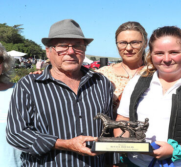 Revell Douglas’ mother Laura, father Don and sister Paula presented Leah with the trophy after she won the second annual Hygain Revell Douglas Memorial Junior Drivers Series by a point.