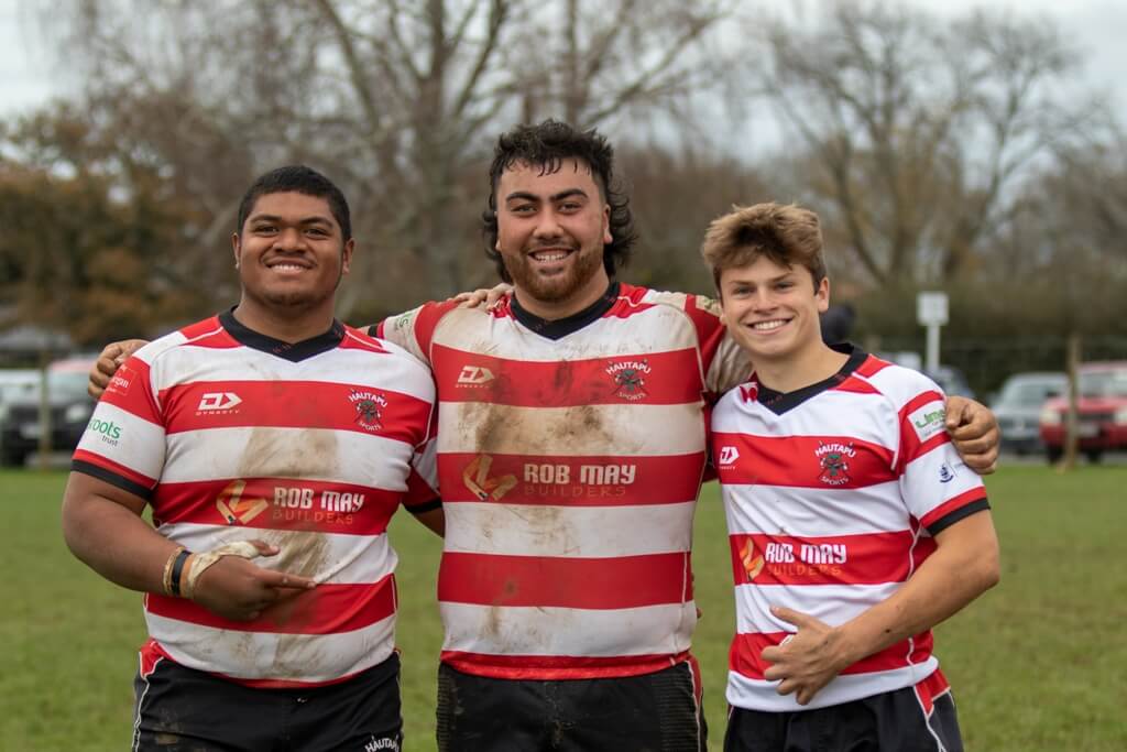 - Game time: Evan Cram, right, with from left Flynn Pierce and Reid Shackleton after the Colts beat Varsity. Photo: Jane Thompson.