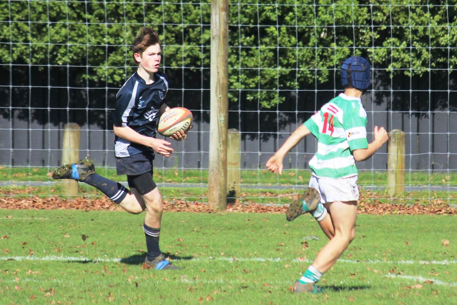 - Cambridge halfback Max Bell gets ready to clear the ball from the Cambridge scrum.