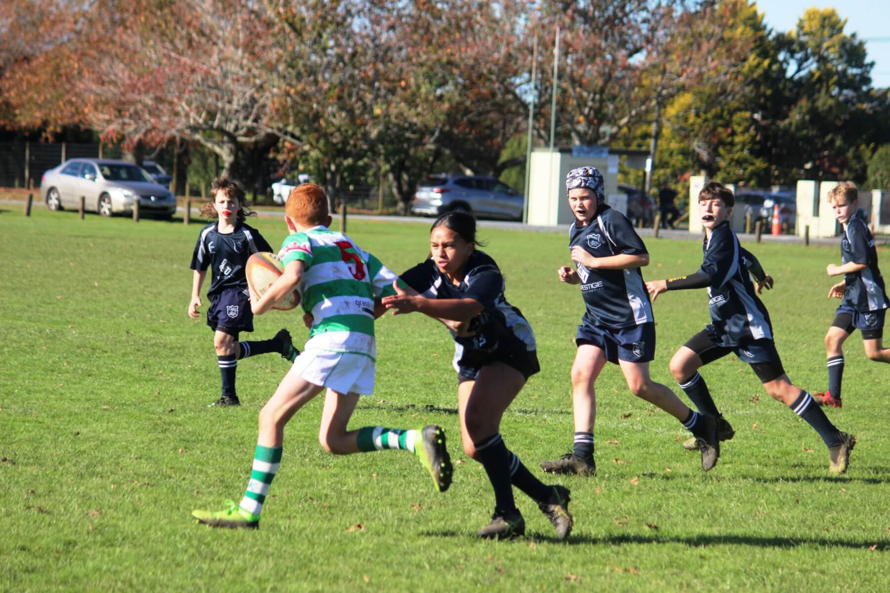 - Paige Vave moves in to tackle the Marist lock watched by, from left Max Bell, Paige Vave, Jonny Ward, Jake Hayward, Rylee Stembridge.