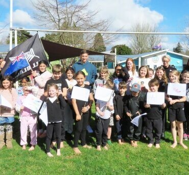 He brought back with him the card of congratulations students made when his selection to the All Blacks was announced. He spent some time with students talking about his journey to becoming an All Black and answered questions the students had written for him.