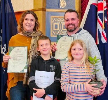 Allegiance sworn, from left Taryn, Sebastian, 9, McKenzie, 7, (already a citizen), and Gareth Bird, of Cambridge. Photo: Mary Anne Gill.