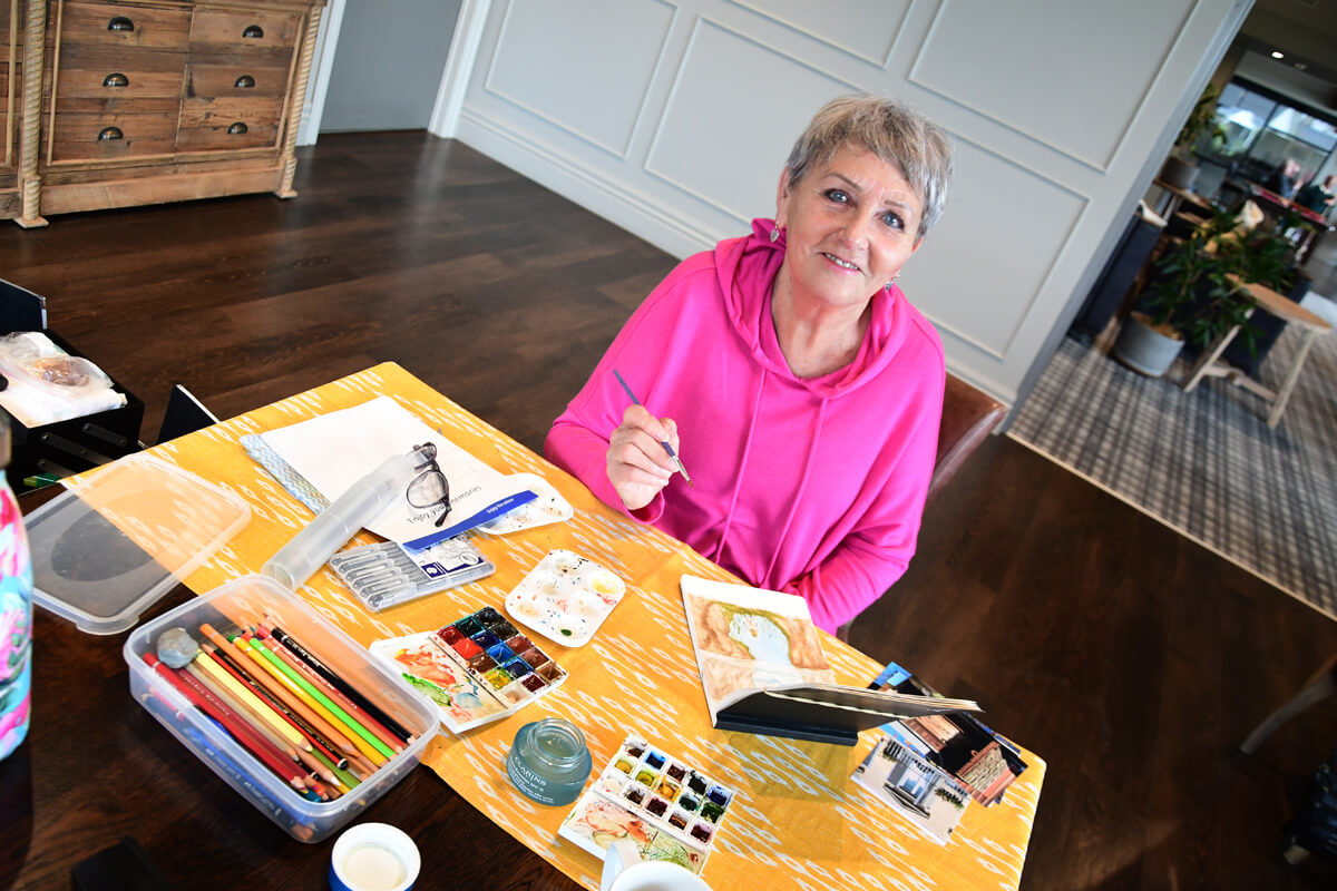 - It’s not just about quilting – craft group member Carol Travis is working on some water colours