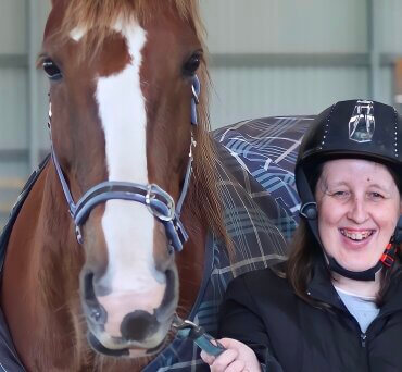 Theresa Rippey at Cambridge Riding for the Disabled with Kiki.