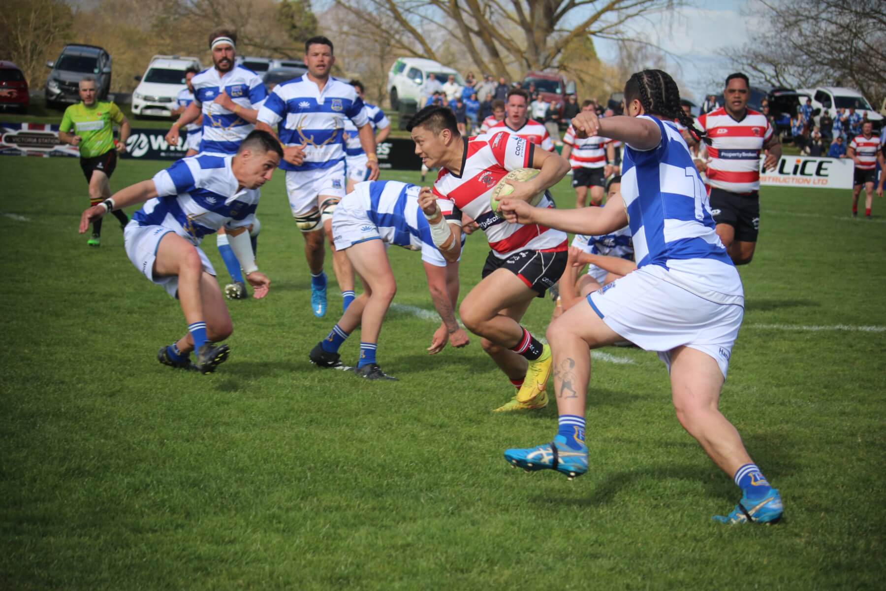 All together now – the annual community day which doubles as a highly social Battle of the Bridge produced one perfect result last weekend. Hautapu and Leamington’s over 45 veterans fought out a 10-all draw to share the Bull Shirt Trophy.