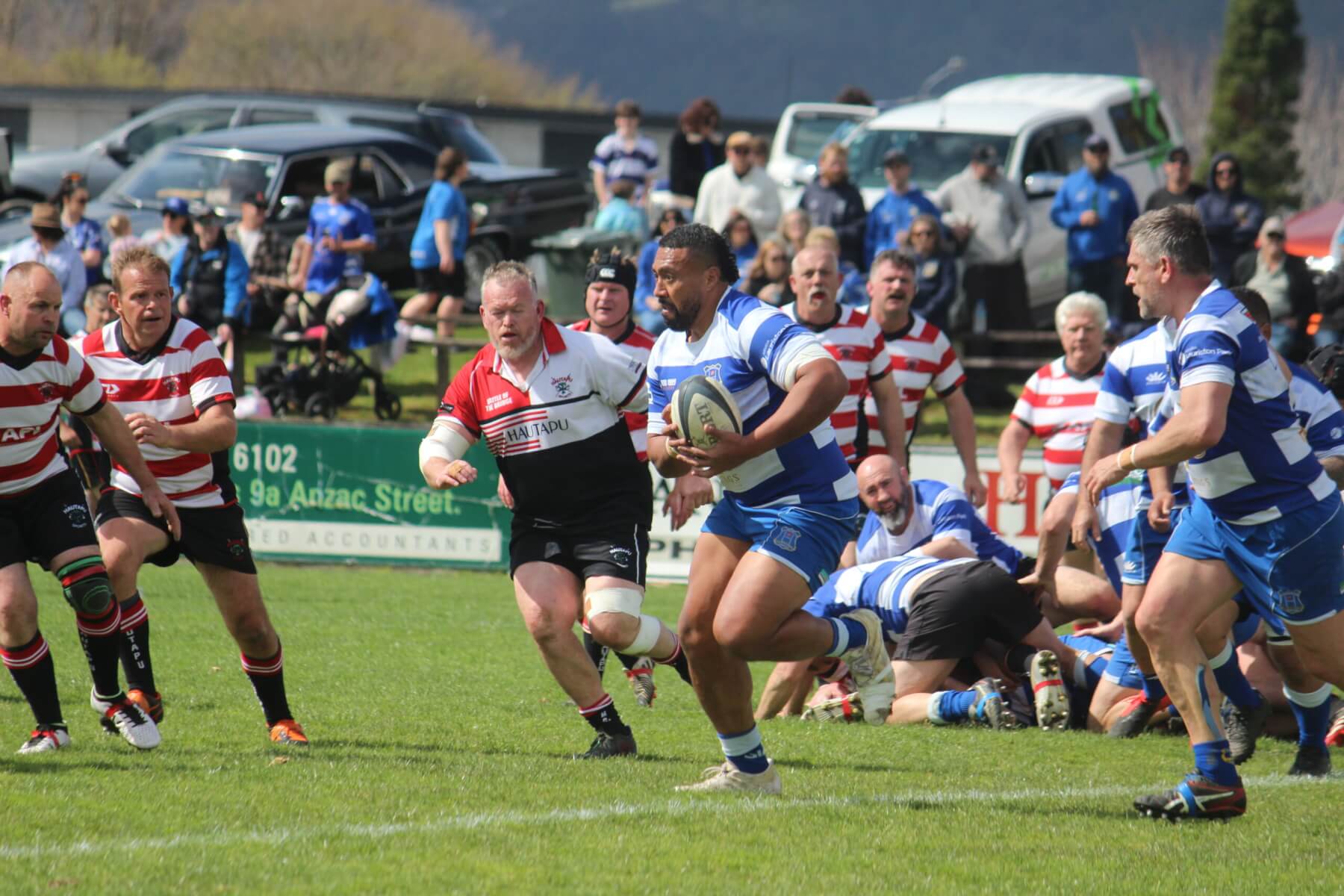 - Fullback Chris Joe makes the break which led to his opening try for Hautapu in the over 35s Battle of the Bridge.