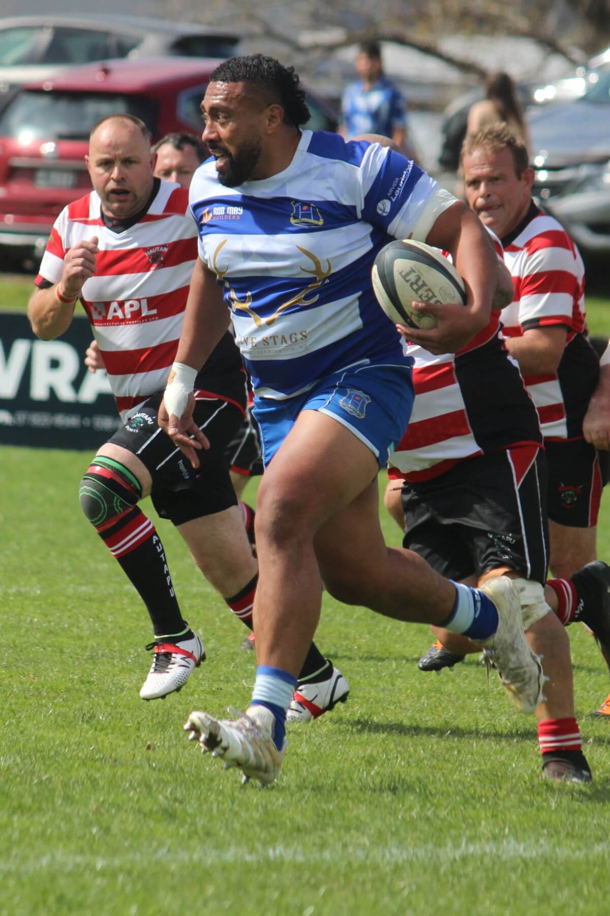 - Hautapu hooker Justin Bunting has the line in his sight for the opening try in the over 45s battle for the Bull Shirt Trophy.