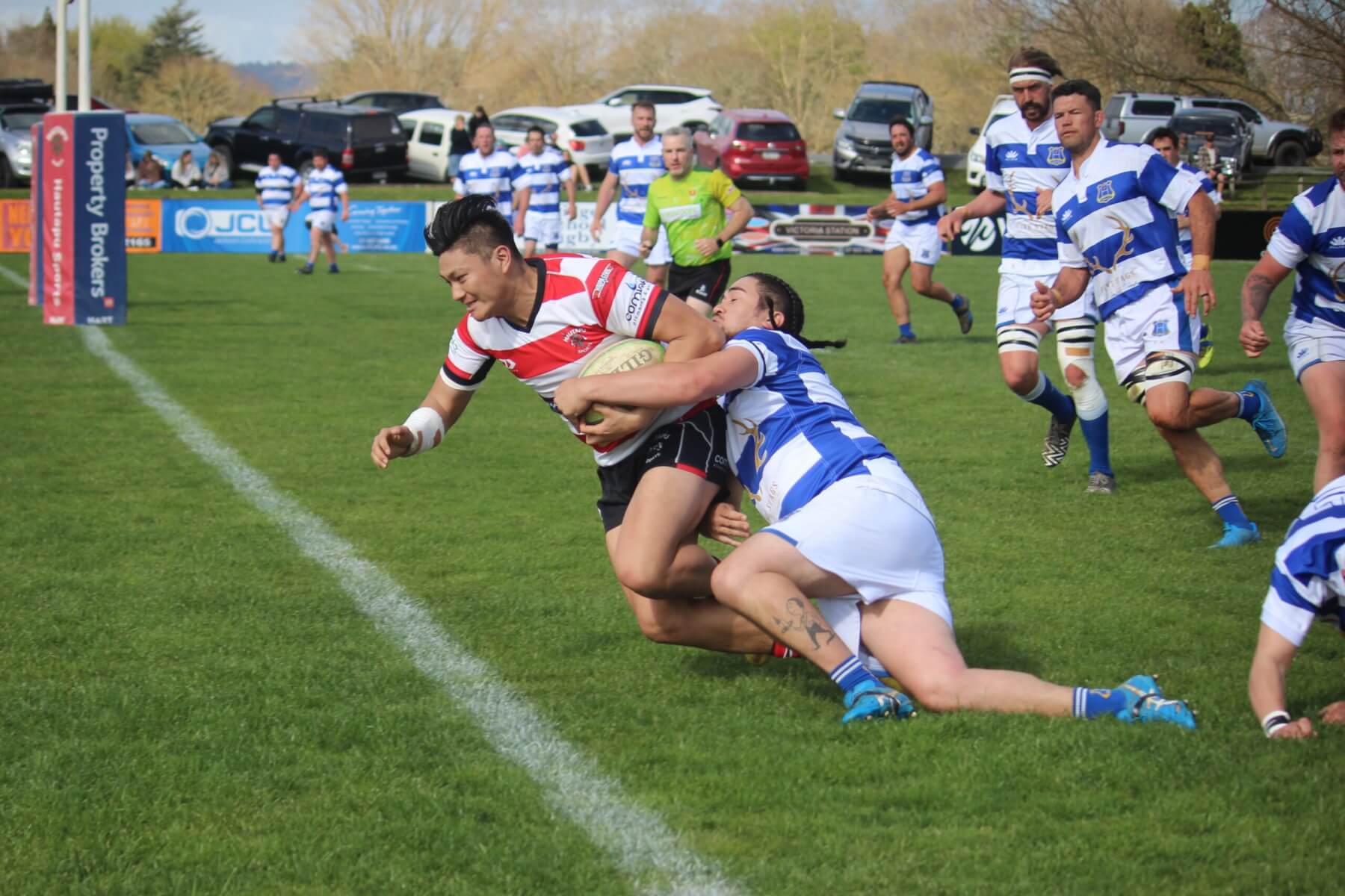 - Fullback Chris Joe crashes over the line for the opening Hautapu try in the over 35s Battle of the Bridge 2023