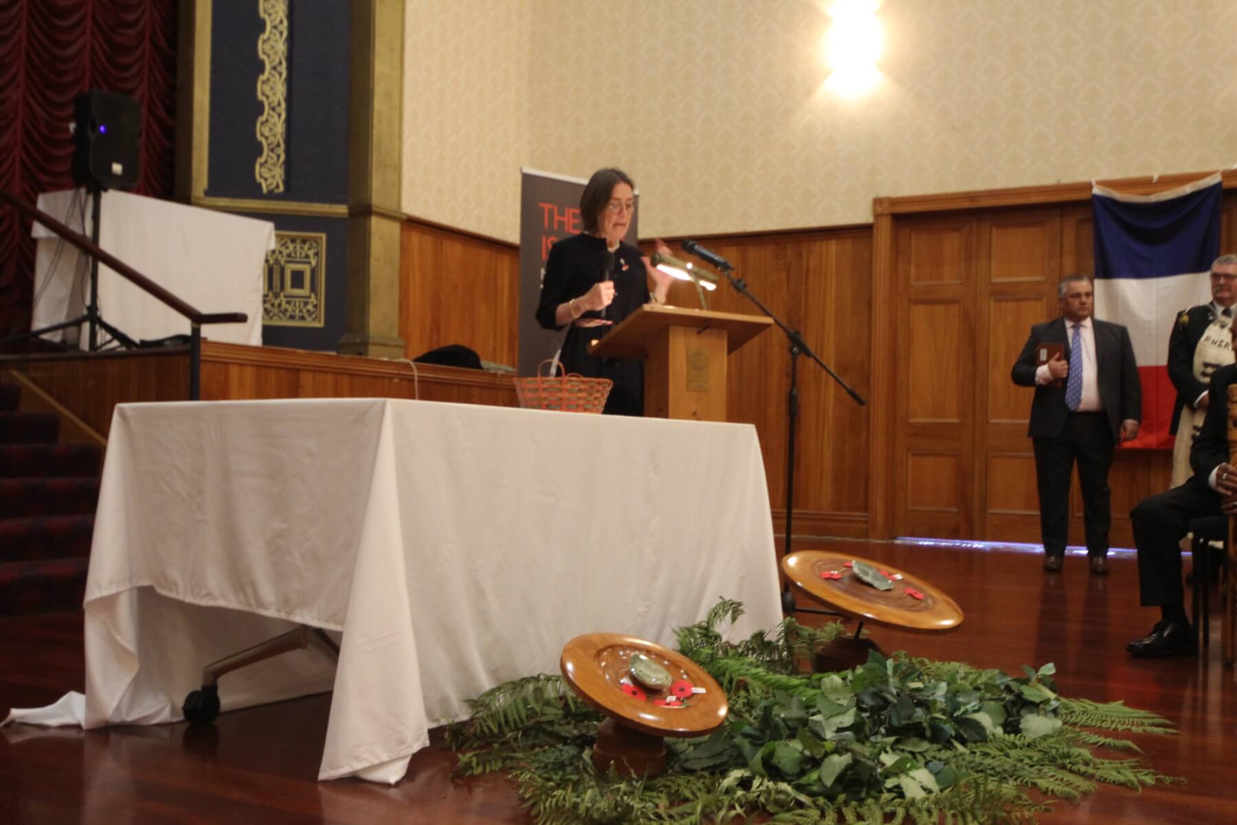 - Mireille Borne, Chargé d’Affaires a.i. from the Embassy of France acknowledges the gifts. Photo: Mary Anne Gill.