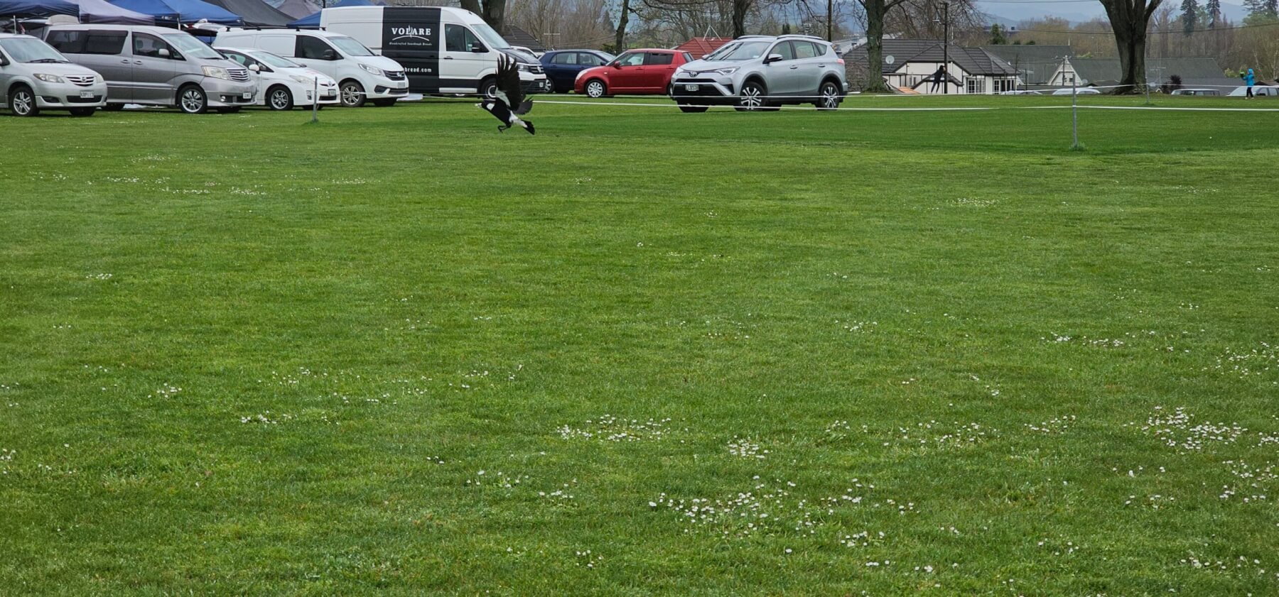 A magpie swooped towards these trees adjacent to Cambridge Oval and hit a bystander.
