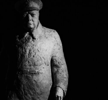 Winston Churchill statue against a dark background. Photo by Christian Skiada.