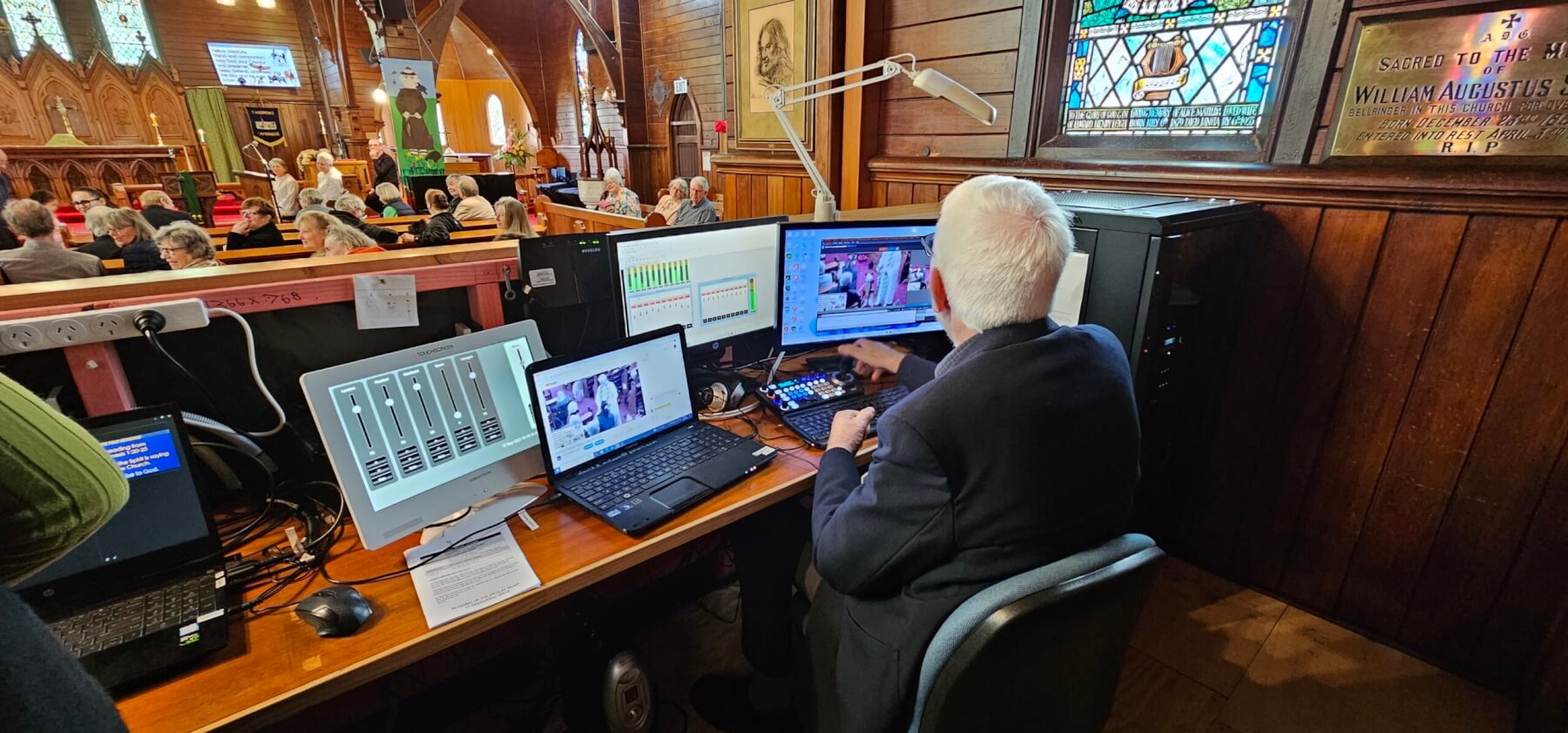 - Stephen Riddell looks after the live streaming at the Blessing of the Pets at St Andrew’s Anglican Church.